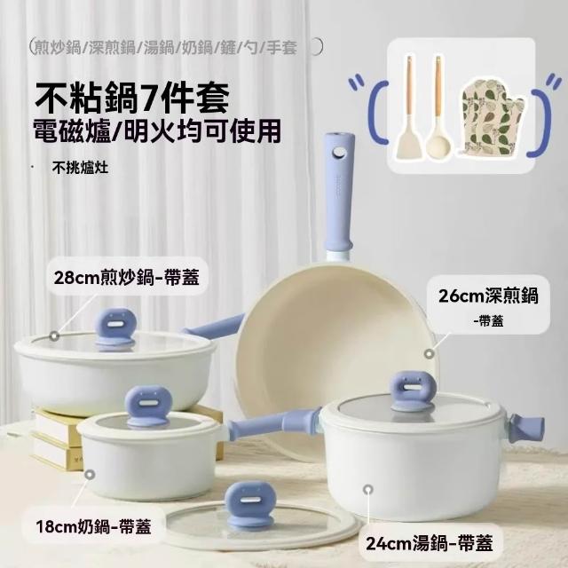 Carote卡羅特 鍋具套裝 不粘鍋全套 家用廚房廚具7件套(炒鍋/奶鍋/輔食鍋/平底鍋/湯鍋/煎鍋)