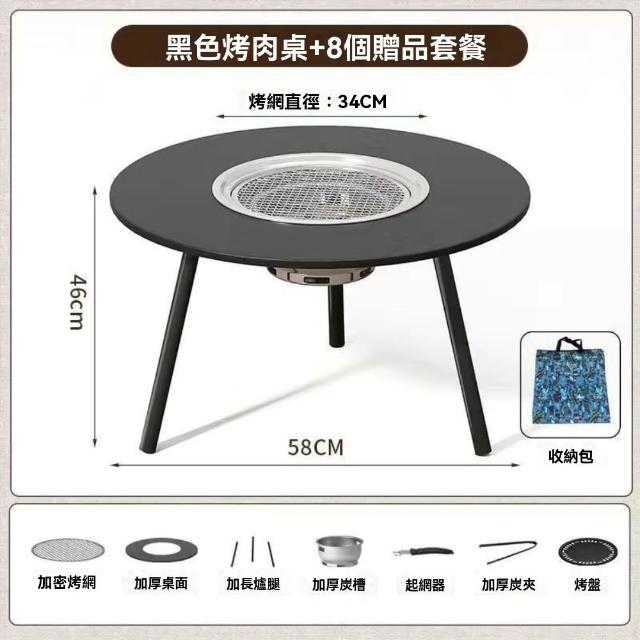 戶外燒烤爐 庭院多功能圍爐桌 附六件套烤盤烤網等(一桌多用/火鍋/燒烤/煮茶/取暖)