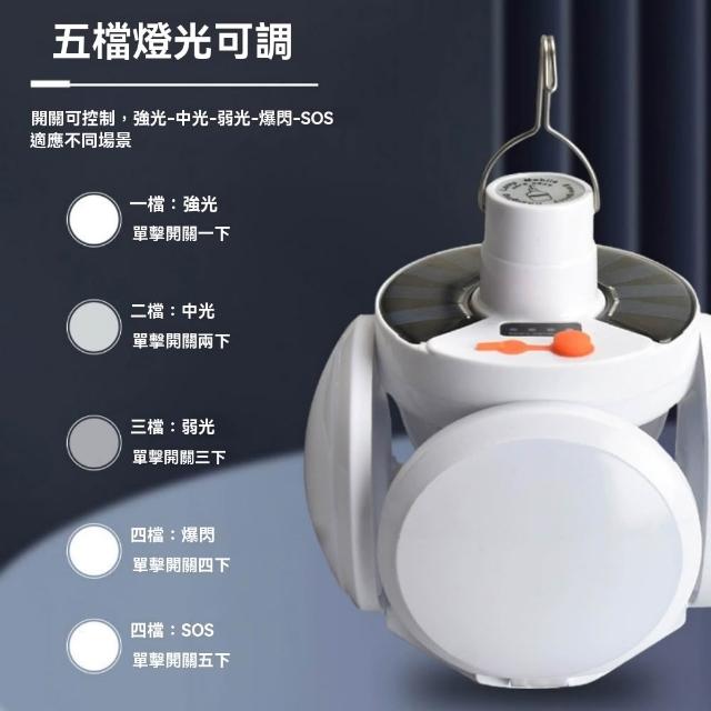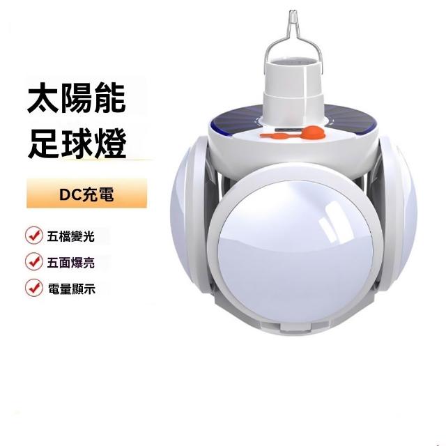 太陽能足球燈 長續航充電露營燈 五面發光可展開多功能折疊家用應急球泡燈(太陽能燈/多場景適用)