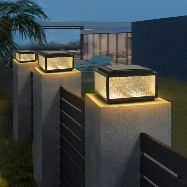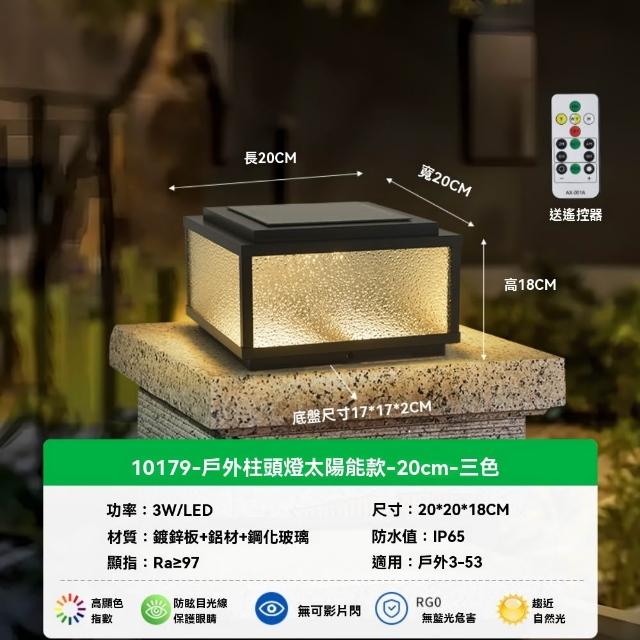 星辰生活太陽能柱頭燈 戶外防水別墅花園墻頭燈 家用室外庭院圍墻大門柱子燈(三色光/高效太陽能板)
