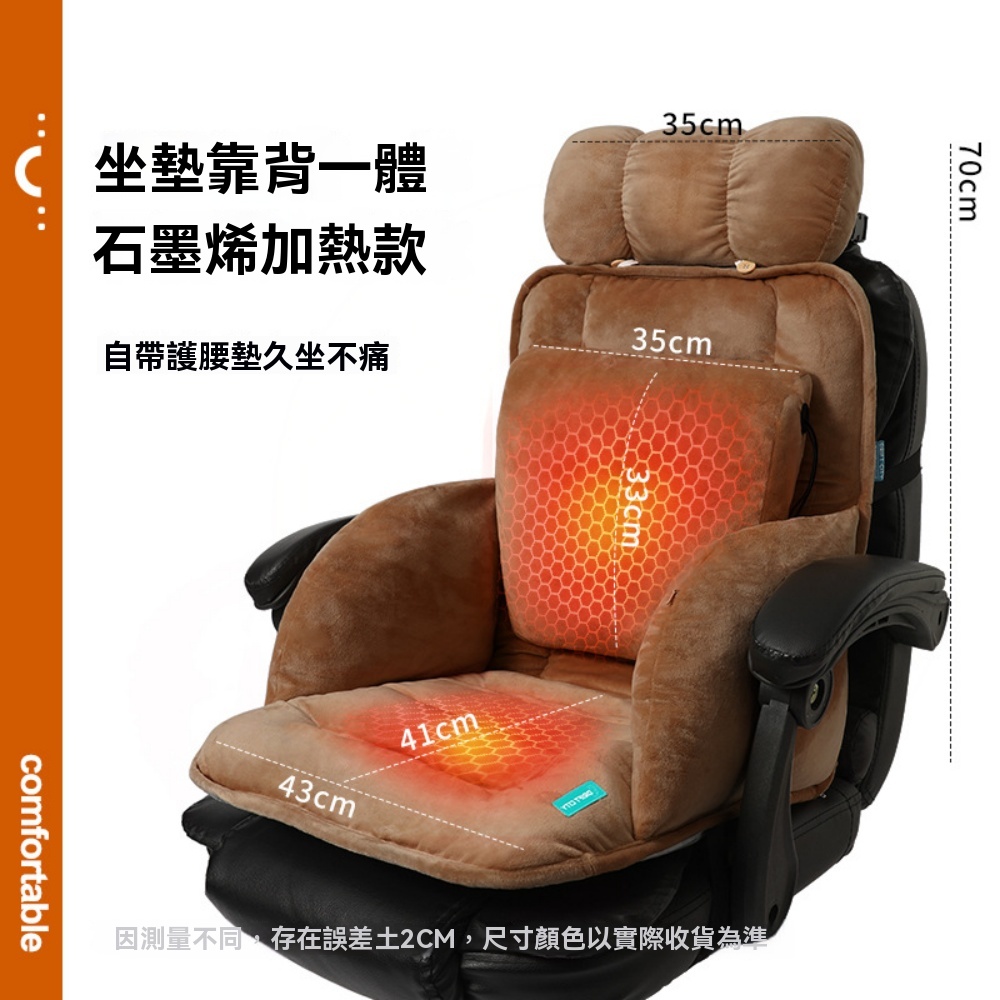 星辰生活加熱坐墊 辦公室久坐神器腰靠墊一體 石墨烯usb電熱座椅靠背椅墊(均勻升溫/柔軟舒適)