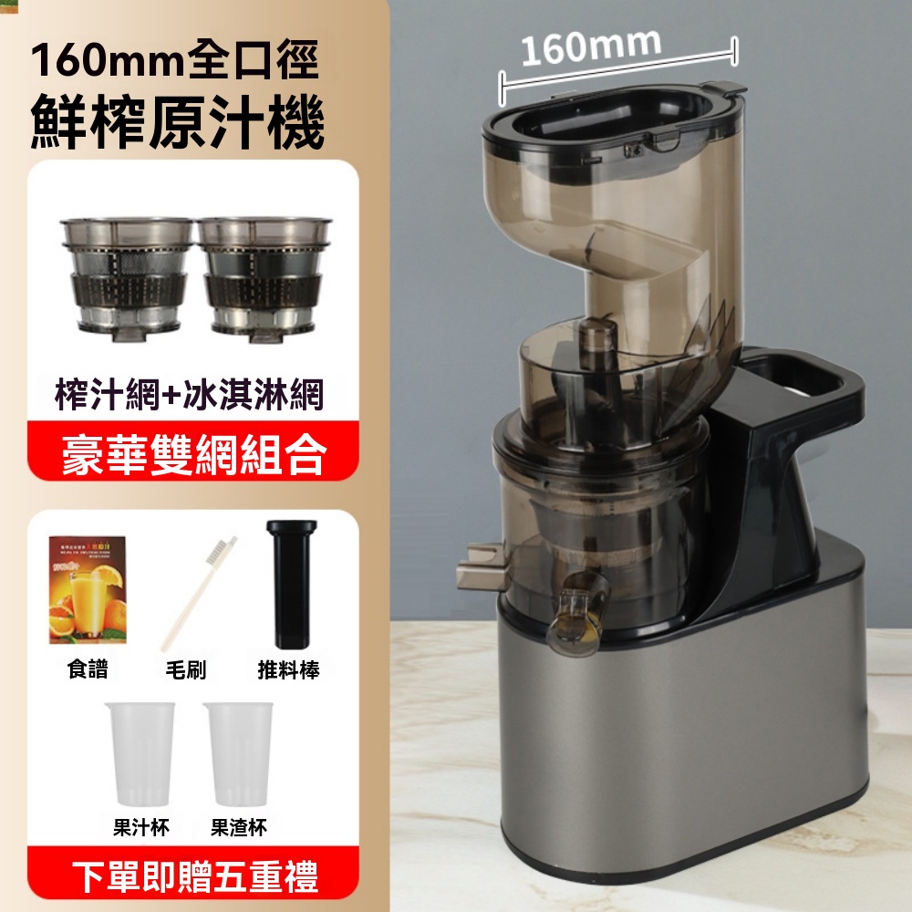 星辰生活不銹鋼榨汁機 全自動多功能果蔬原汁機 渣汁分離果汁機(160mm大口徑/高純汁率/正逆旋轉)