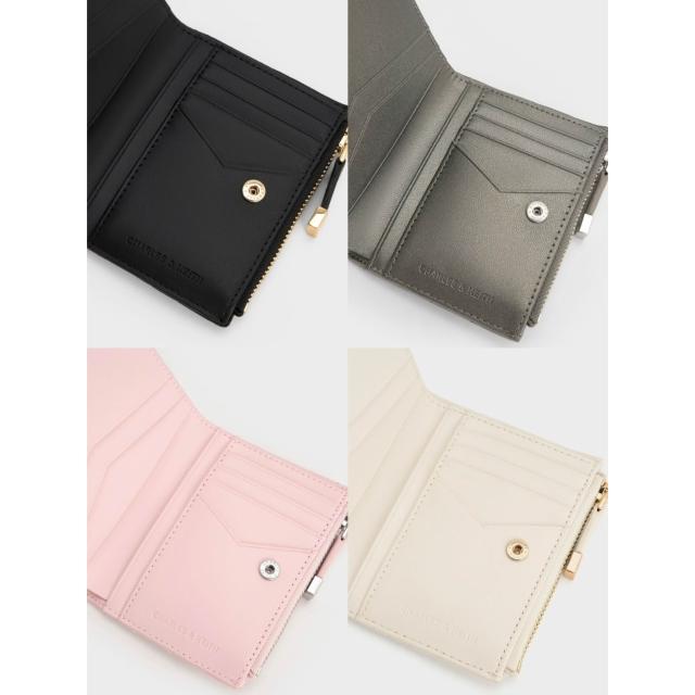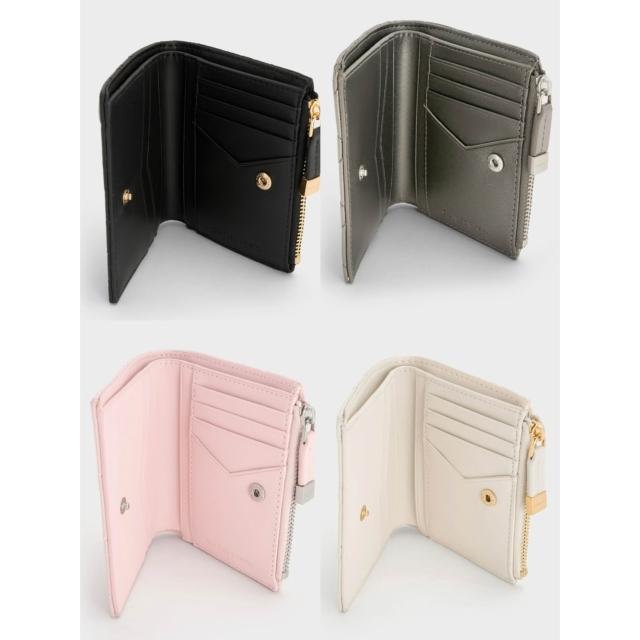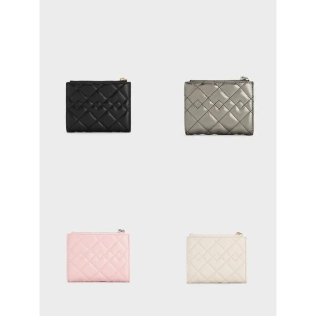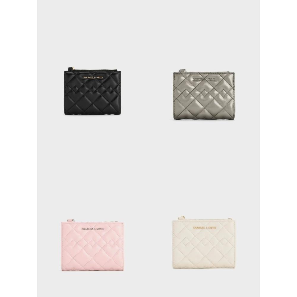 CHARLES & KEITH Duo 菱格短夾 - 奶油色/棉花糖粉/金灰色/黑色