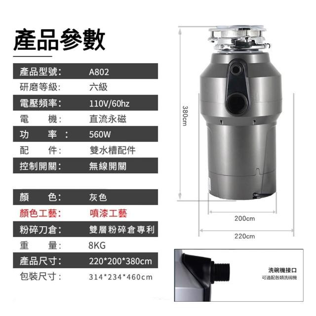 廚餘處理機 灰色(廚房垃圾粉碎機、廚餘機、研磨機、食物殘渣處理機、廚餘垃圾粉碎機)