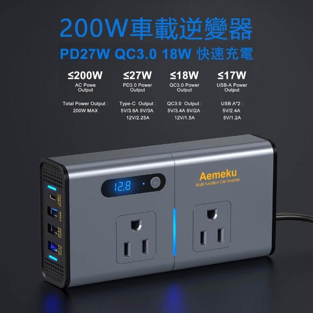 車載逆變器 200W(12V轉110V變壓器、電源轉換器、電瓶轉換器、變壓器轉接頭)