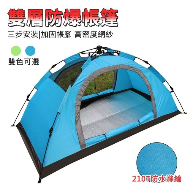 戶外露營防水雙層單人帳篷 藍色(單人自動帳篷、戶外帳篷、釣魚速開帳篷、翱翔者單人帳篷雙層)