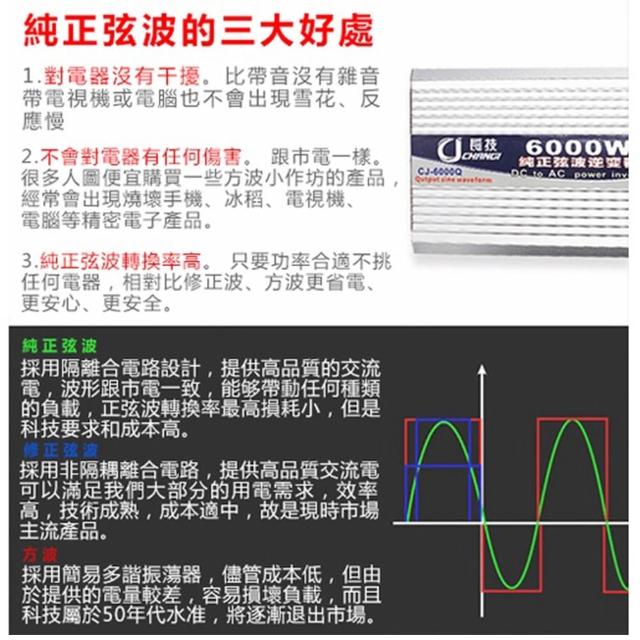 純正弦波逆變器 6000W(12V轉110V變壓器、電瓶轉換器、汽車電源轉家用、變壓器轉接頭)