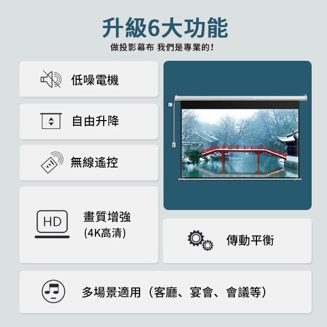 電動幕布 投影布幕 升降幕布 60/72/84/100吋(遙控投影幕布、高清投影布、投影機布幕、家用投影布、投影儀布幕)