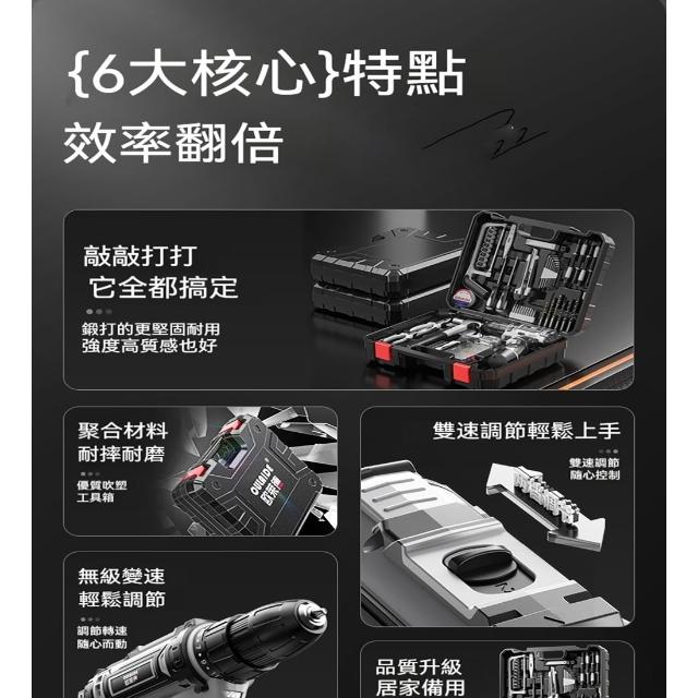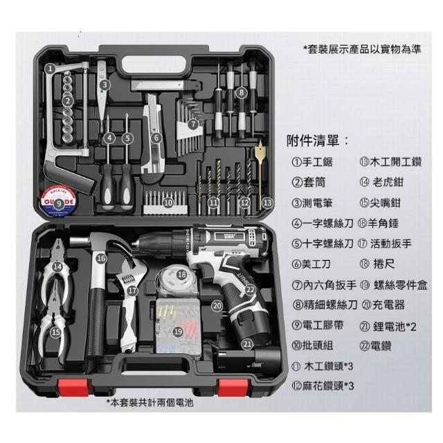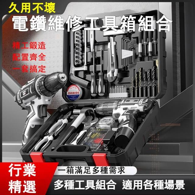 多功能五金維修工具 家用手電鑽工具箱套裝 打孔電動螺絲刀全套 維修多功能工具箱 電鑽工具套裝