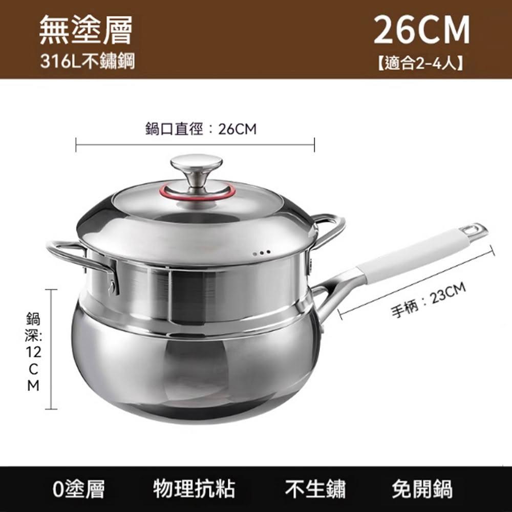 316不鏽鋼大肚鍋 無塗層不沾鍋 炒菜鍋 24/26/28cm(不粘鍋、炒鍋、平底鍋、湯鍋、不生鏽、免開鍋、不挑爐灶)