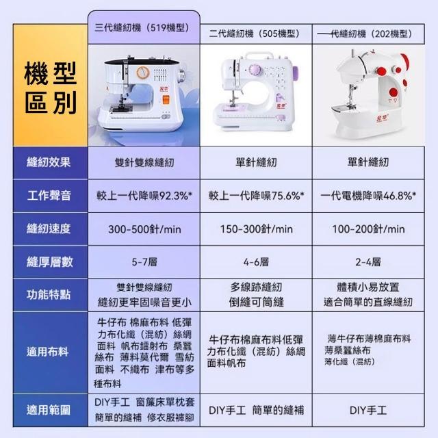 - 6個可更換壓腳,適用不同縫紉