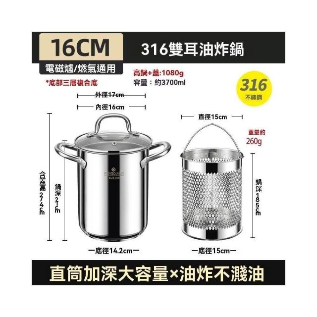 油炸鍋 奶鍋 油鍋 炸鍋316不鏽鋼 加高加深 迷你榨油鍋 小型油炸鍋(炸薯條/帶濾網/省油小炸鍋)