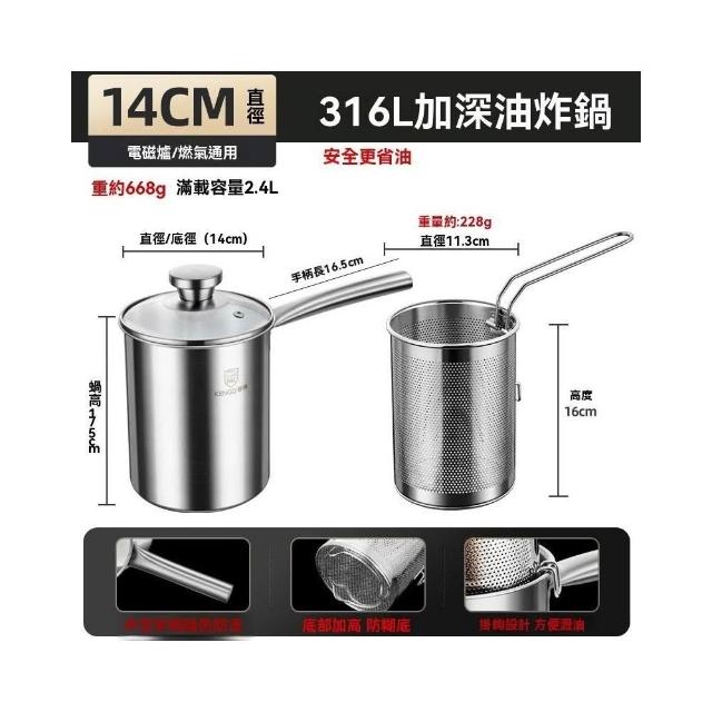 油炸鍋 奶鍋 油鍋 炸鍋316不鏽鋼 加高加深 迷你榨油鍋 小型油炸鍋(炸薯條/帶濾網/省油小炸鍋)