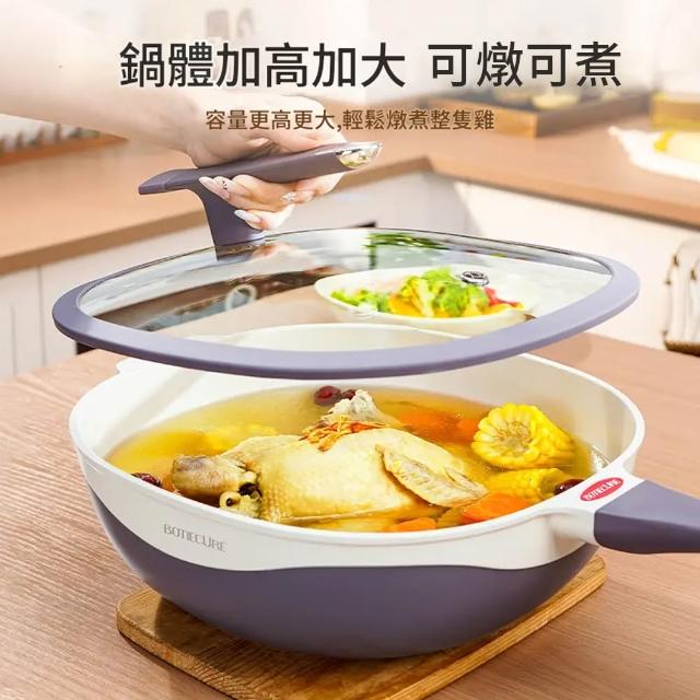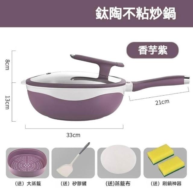鈦陶瓷不沾鍋 多功能蒸煮鍋 炒菜鍋 炒鍋 無塗層 平底鍋 美食鍋(不挑爐具/輕量化/持久耐用)
