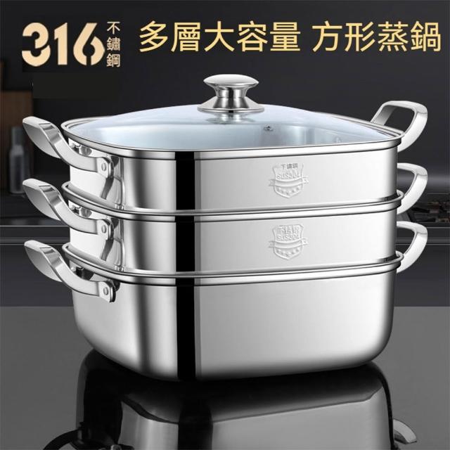 316不鏽鋼方形蒸鍋 蒸魚鍋 蒸籠 單層/雙層/三層 30cm 上蒸下煮(蒸煮鍋、蒸鍋、蒸魚蒸鍋、湯鍋、蒸海鮮、涮火鍋)