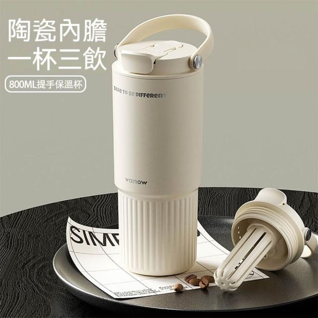 提手保溫杯 保溫杯 保冰杯 陶瓷保溫杯 800ml 大容量 陶瓷內膽(便攜車載杯、吸管杯、咖啡杯、隨行杯、保溫保冷)