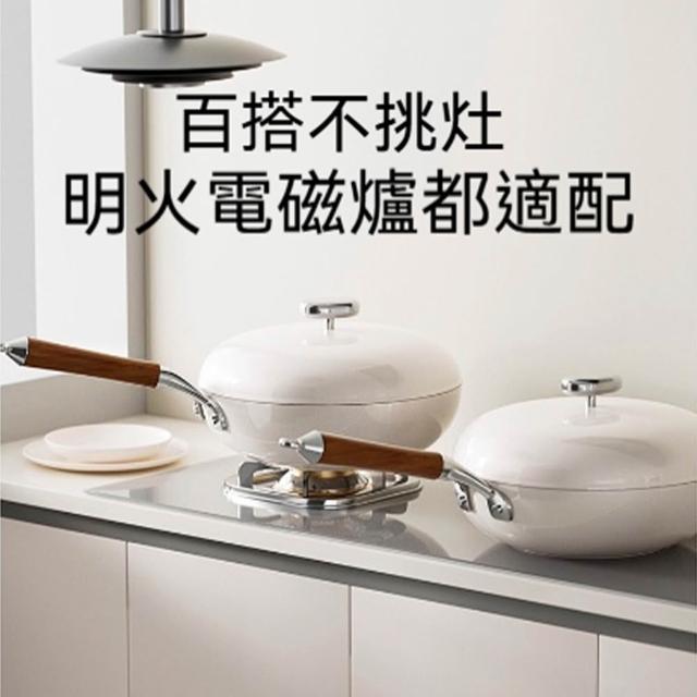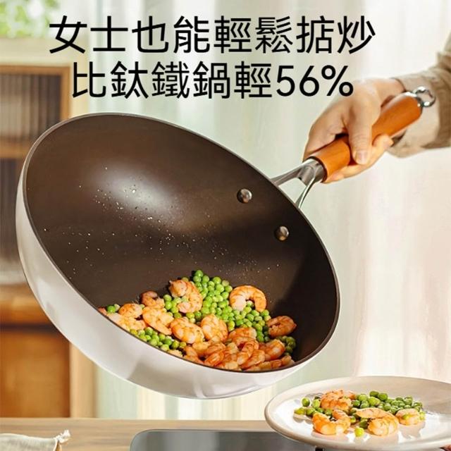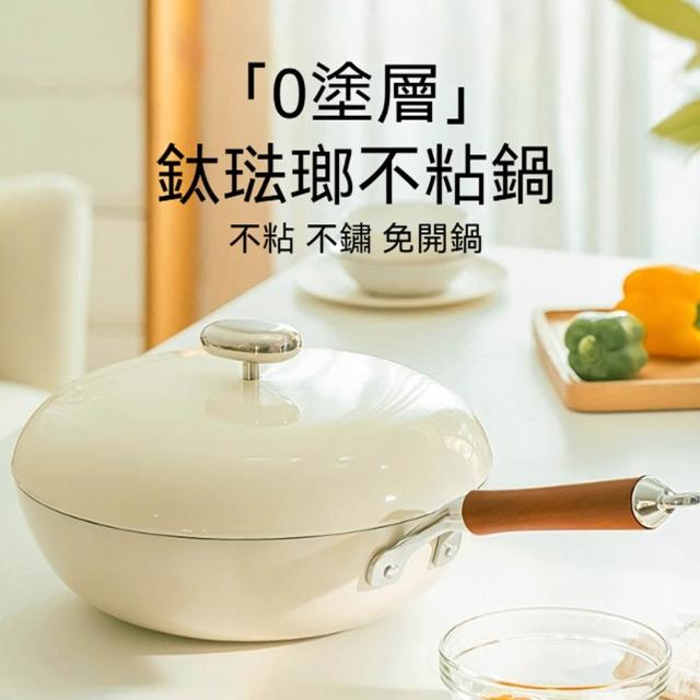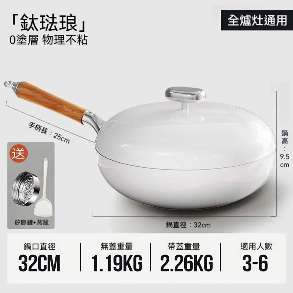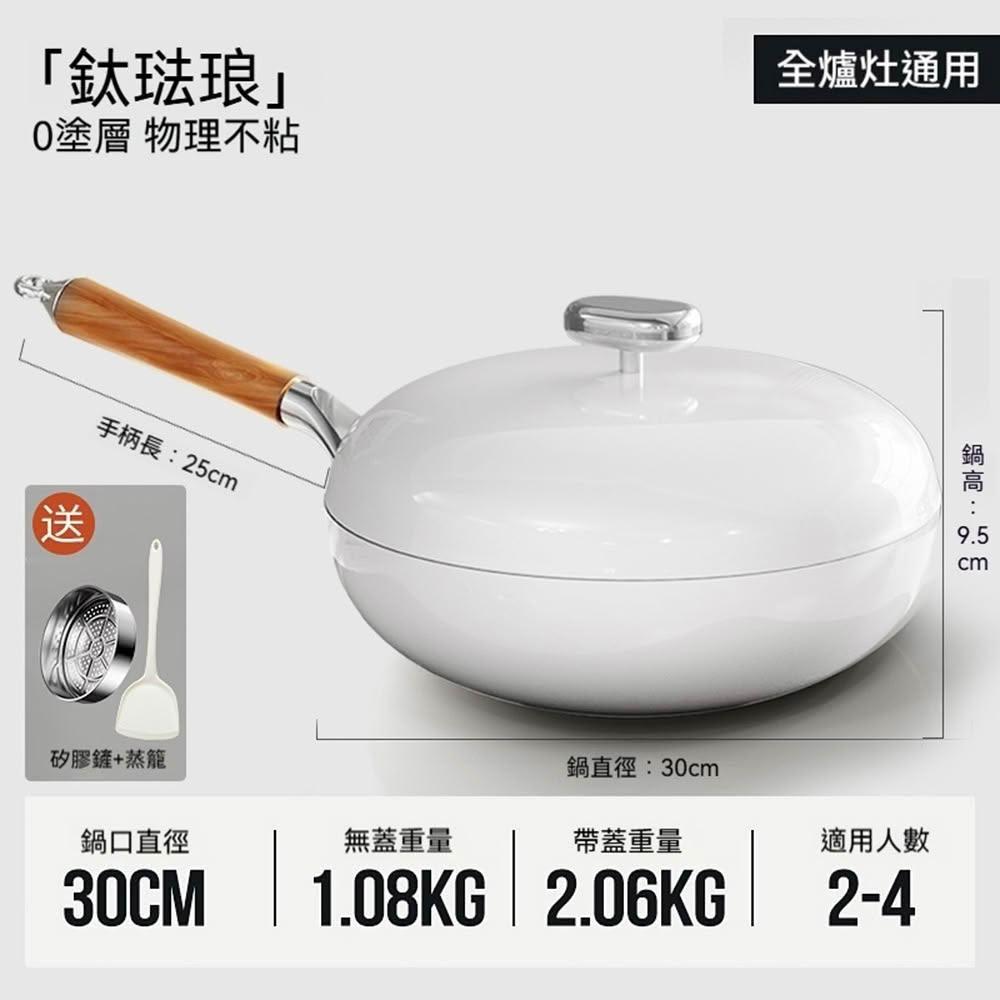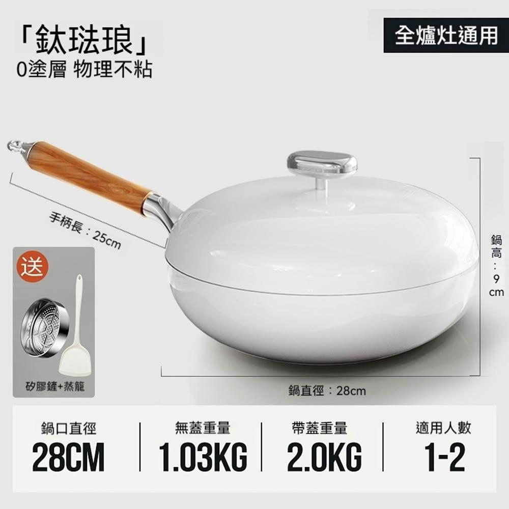 琺瑯鍋 無塗層不粘鍋 鈦鍋 炒菜鍋 28/30/32cm 含蒸籠(炒鍋、不沾鍋、輕量鍋、平底鍋、不粘炒鍋、免開鍋)