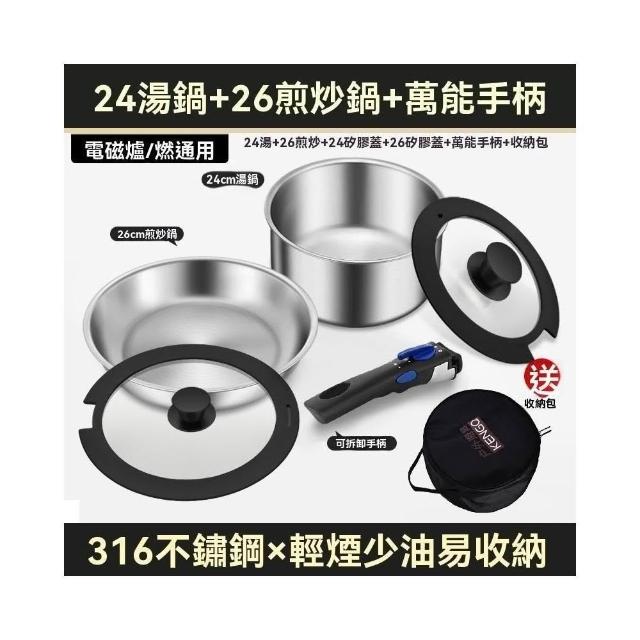 316不鏽鋼炒鍋 可拆卸手柄鍋 煎炒鍋 無塗層(奶鍋/蒸籠/湯鍋/不粘鍋/煎鍋/廚房鍋具套裝)