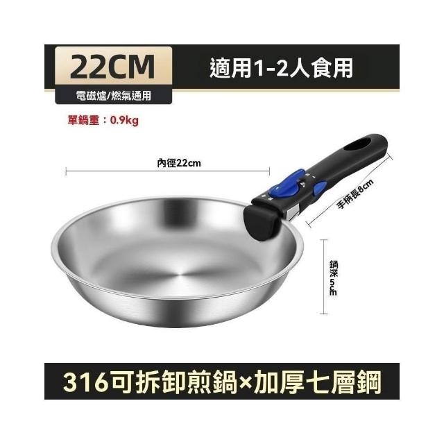 316不鏽鋼炒鍋 可拆卸手柄鍋 煎炒鍋 無塗層(奶鍋/蒸籠/湯鍋/不粘鍋/煎鍋/廚房鍋具套裝)