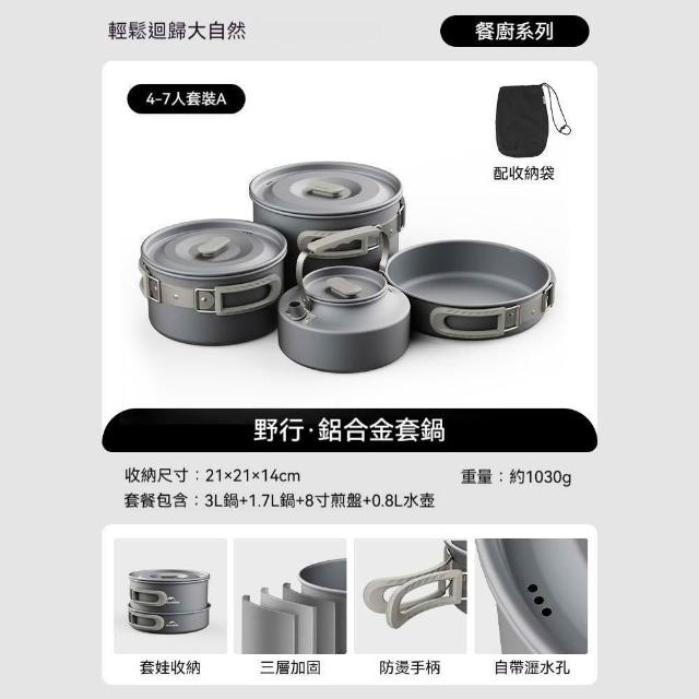 戶外鍋具套裝 露營炊具 鋁合金套鍋 三/四件套 燒水壺 吊鍋 煎盤 水壺 套娃收納(戶外炊具、戶外鍋具組、鋁合金套鍋組)
