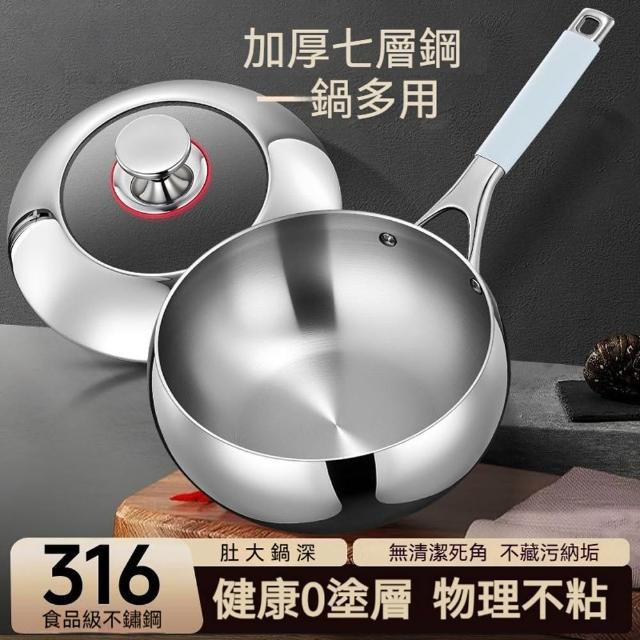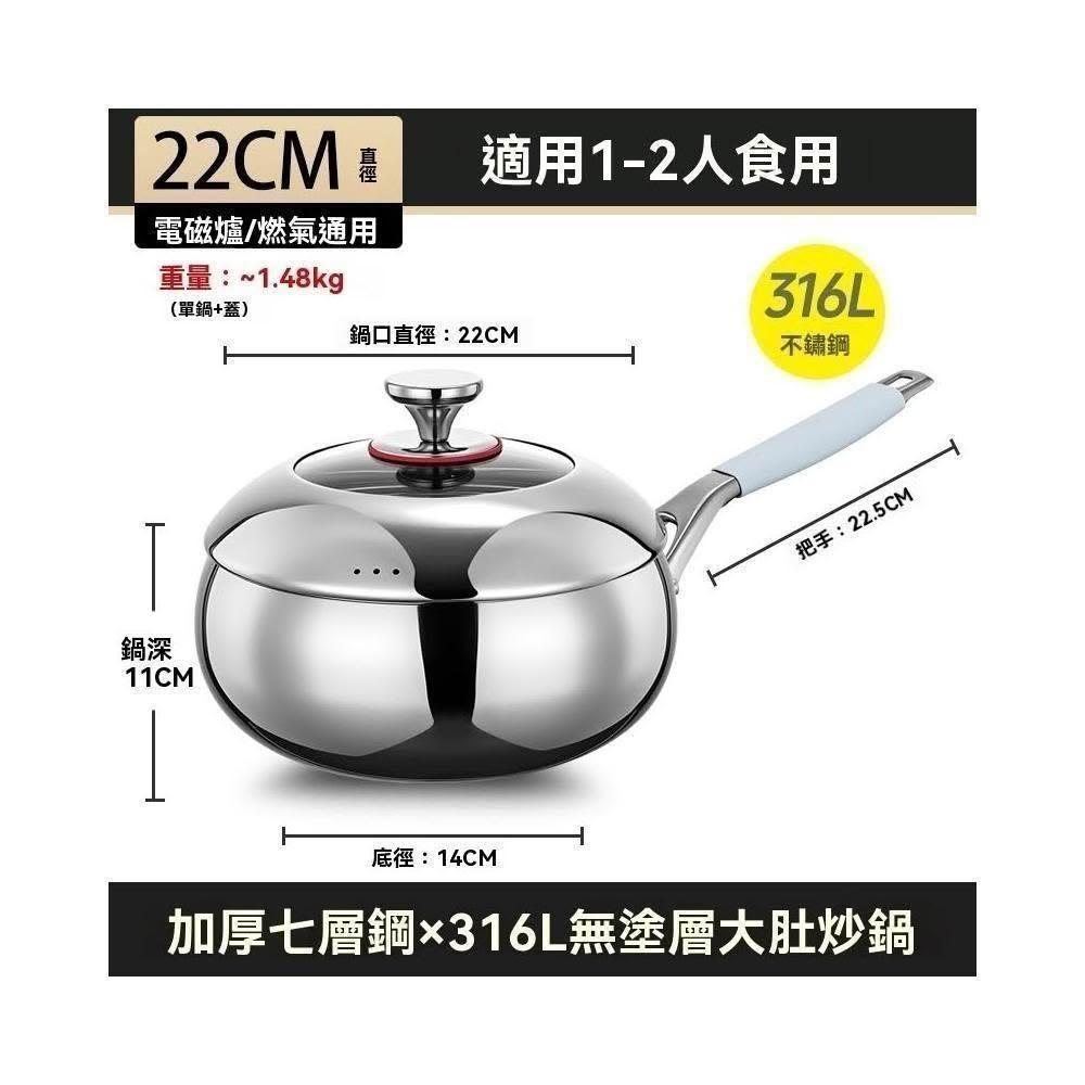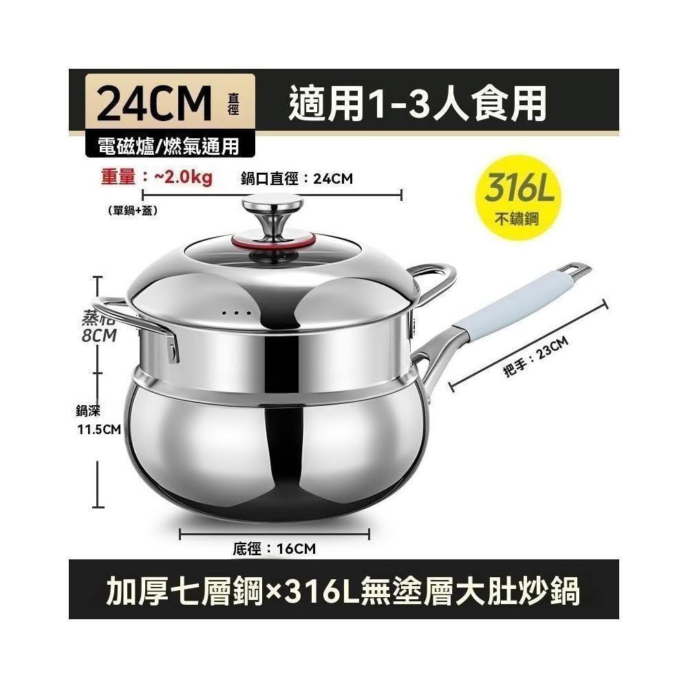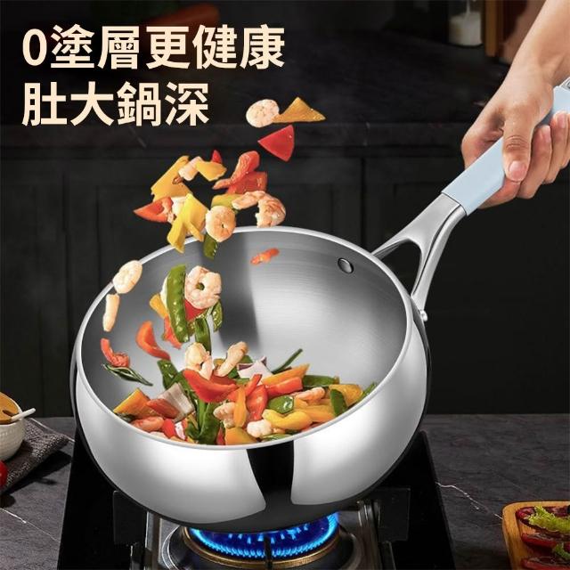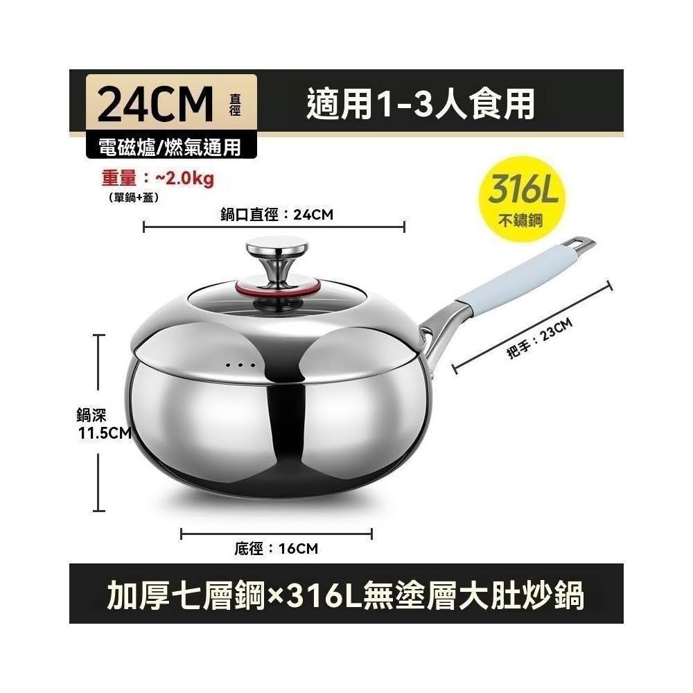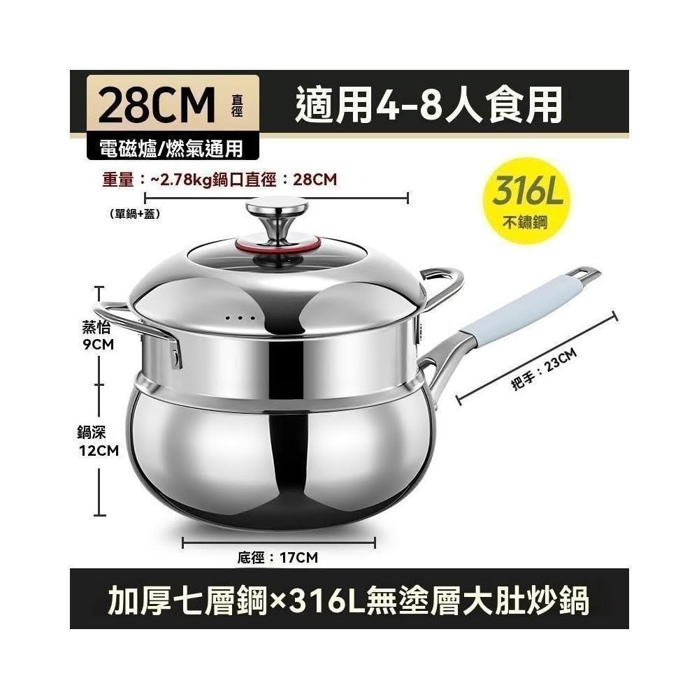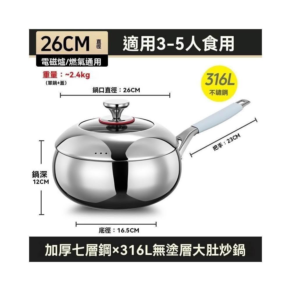 現貨 大肚鍋 316不鏽鋼炒鍋 24/26/28cm無塗層 湯鍋 物理不沾(不沾鍋/小炒鍋/炒菜鍋/不易生鏽/不挑爐灶)