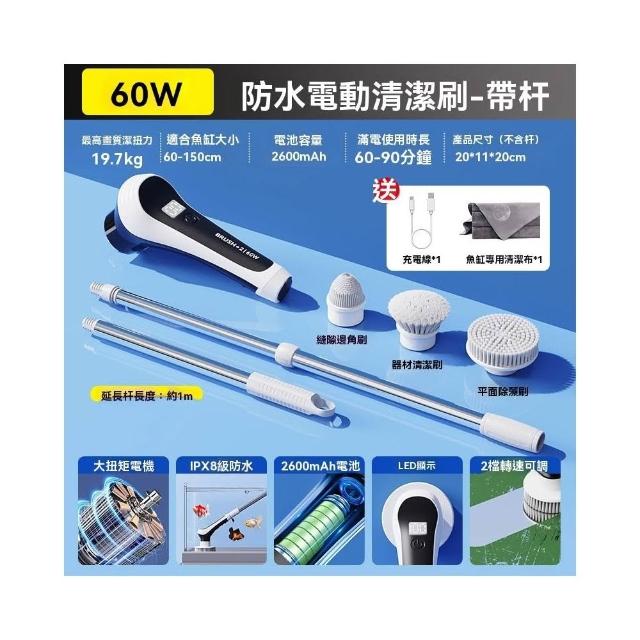 電動清潔刷 IPX8級防水 魚缸清潔刷 七合一無線手持刷(清潔無死角/玻璃清洗/萬用刷/不鏽鋼桿/6種刷頭)