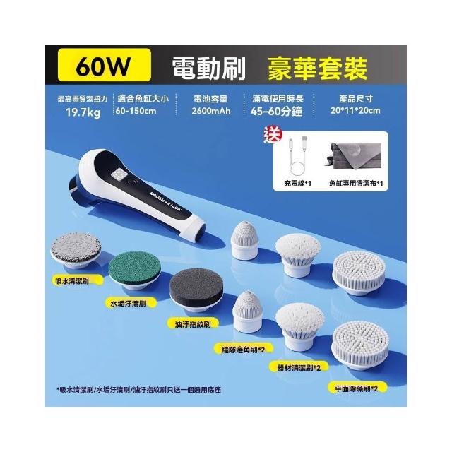 電動清潔刷 IPX8級防水 魚缸清潔刷 七合一無線手持刷(清潔無死角/玻璃清洗/萬用刷/不鏽鋼桿/6種刷頭)