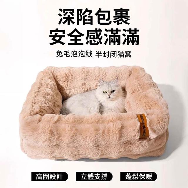 半封閉貓窩 保暖寵物窩 寵物睡墊 冬季保暖 整窩可拆洗(寵物睡窩、寵物床、狗窩、貓床狗床、加絨保暖、隱藏式拉鏈)