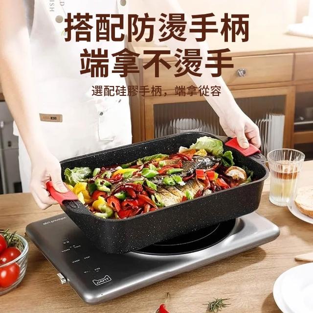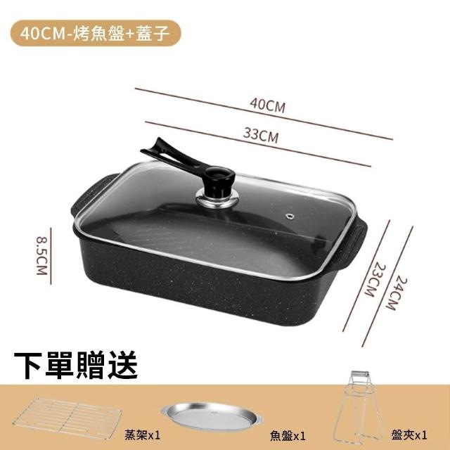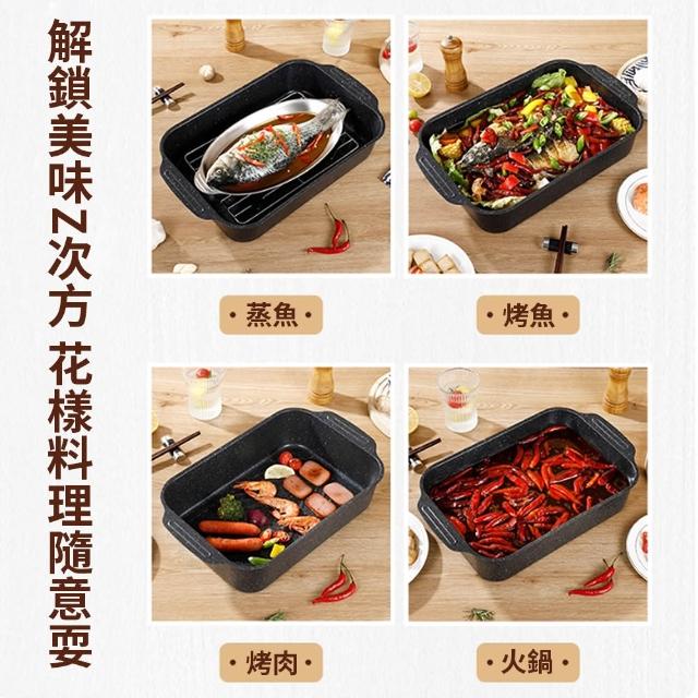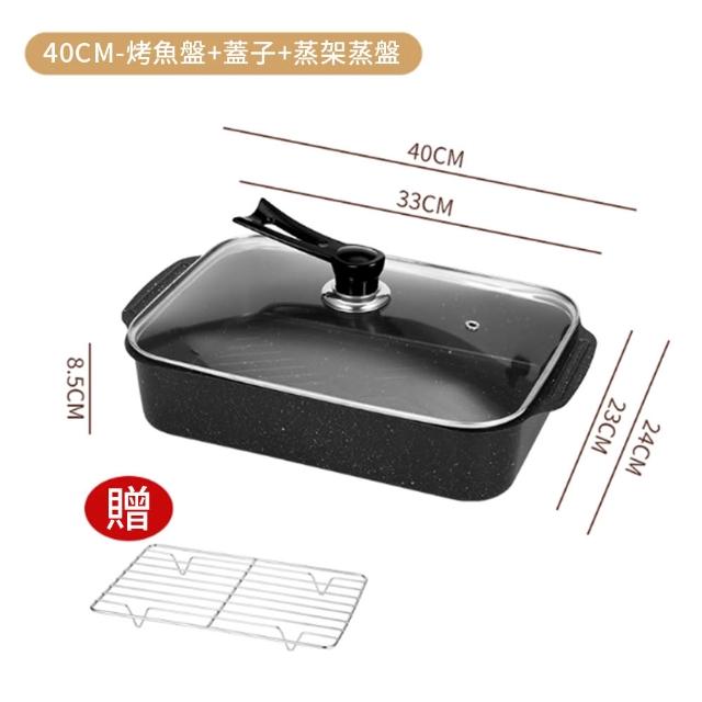 蒸魚鍋 不粘蒸魚鍋 長方形蒸鍋 麥飯石塗層 40/45cm 大容量 贈蒸架(烤魚鍋、烤魚盤、火鍋鍋、不沾鍋、蒸鍋)