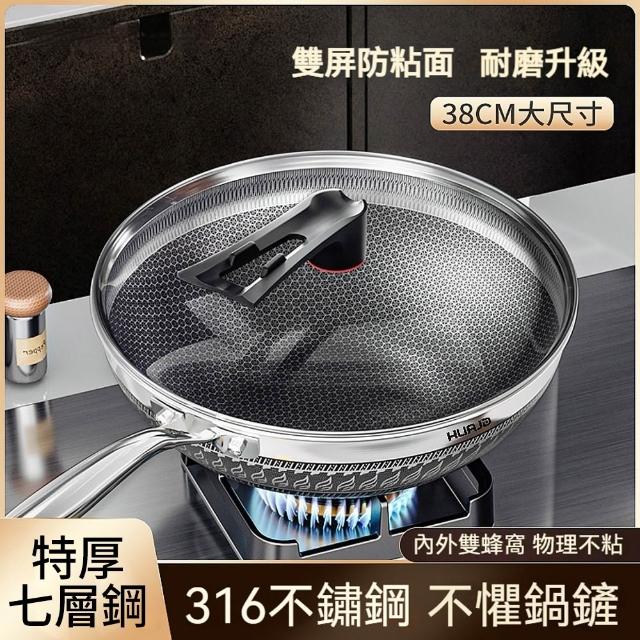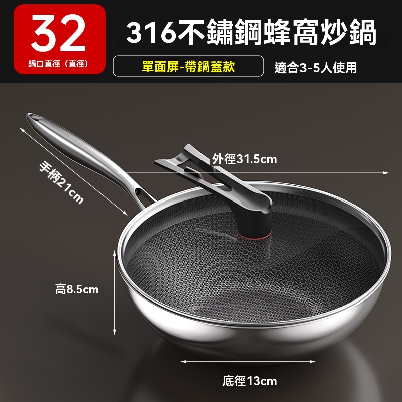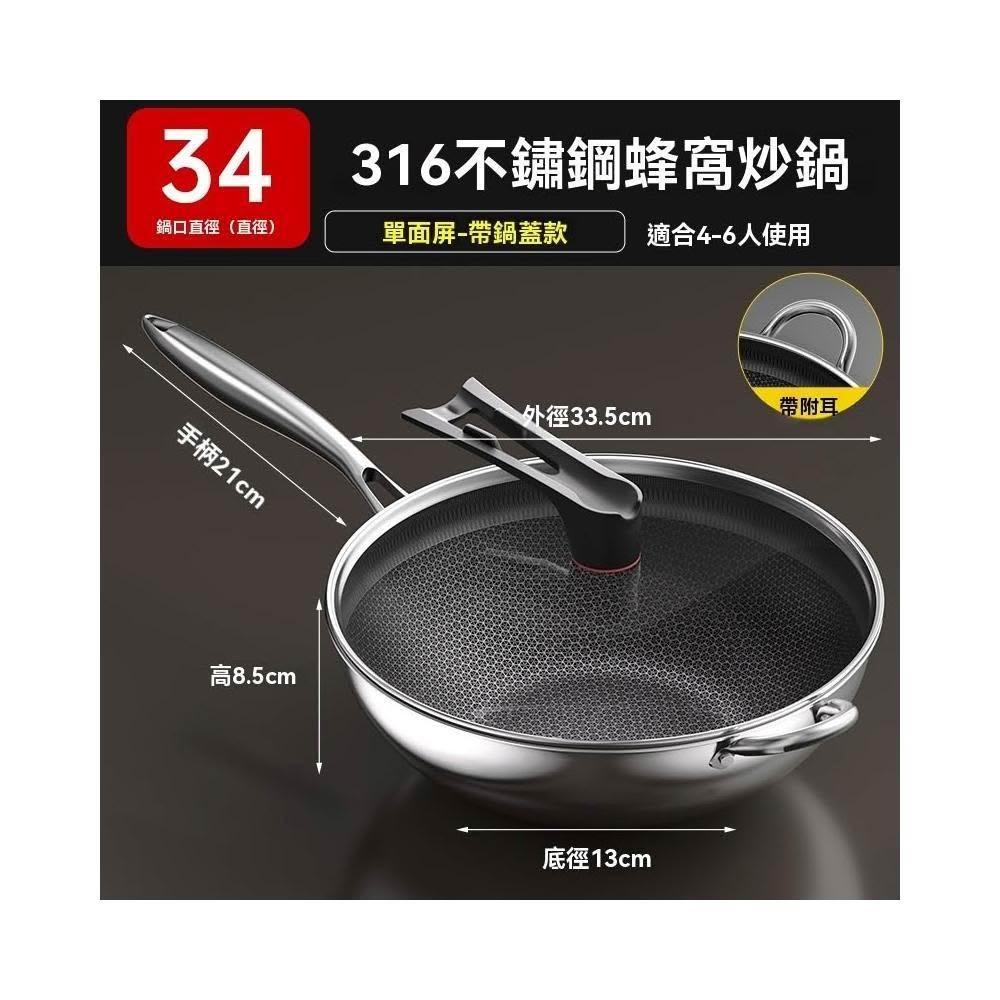 316不銹鋼炒鍋 蜂窩不沾鍋 炒菜鍋 附鍋蓋 32/34/36/38cm(平底鍋/煎鍋/不沾鍋/不挑爐具)