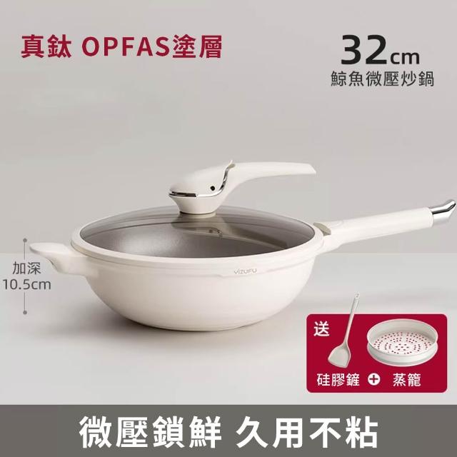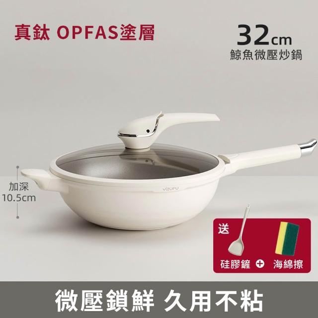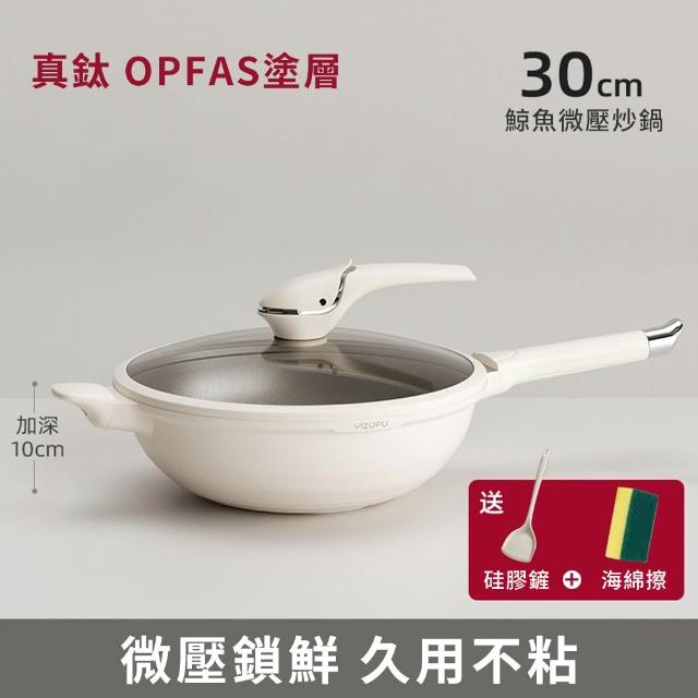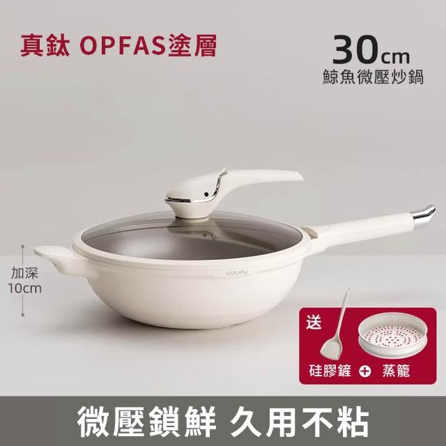 鯨魚微壓炒鍋 鈦微壓炒鍋 微壓鯨魚鍋 炒菜鍋 30/32cm(無塗層不粘鍋、炒鍋、鯨魚鍋、輕量鍋、平底鈦鍋、微壓快燉)