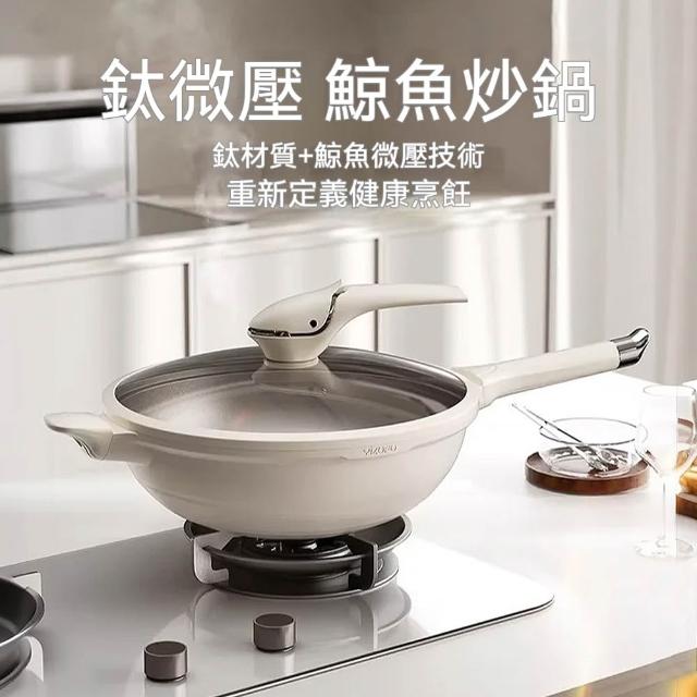 鯨魚微壓炒鍋 鈦微壓炒鍋 微壓鯨魚鍋 炒菜鍋 30/32cm(無塗層不粘鍋、炒鍋、鯨魚鍋、輕量鍋、平底鈦鍋、微壓快燉)