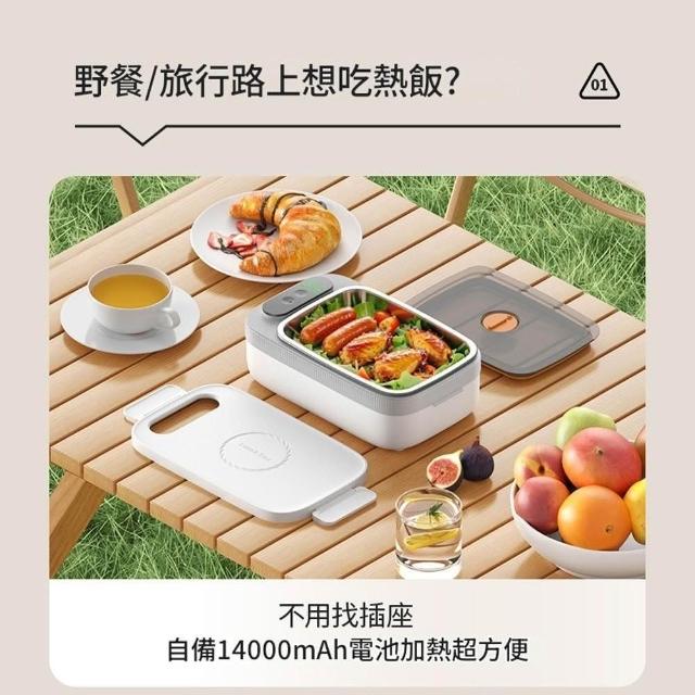 保溫便當盒 電熱便當盒 加熱便當盒 1L 免插電 免注水(加熱飯盒、保溫飯盒、學生上班族餐盒、4檔保溫、內膽可拆卸)