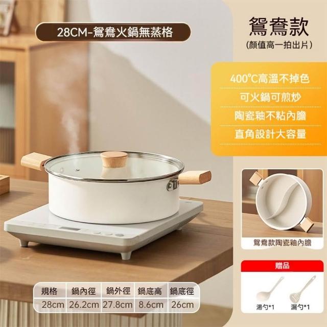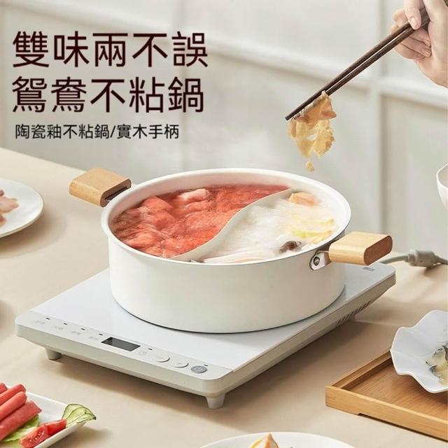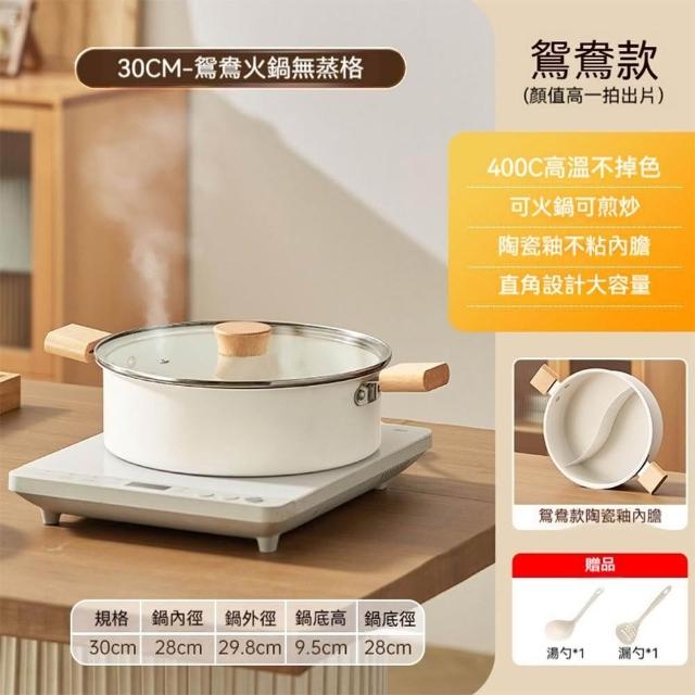 鴛鴦不粘鍋 鴛鴦鍋 火鍋鍋 火鍋盆 28/30cm 贈湯勺漏勺(陶瓷不沾鍋、打邊爐鍋、湯鍋、煎炒鍋、炒菜鍋、鴛鴦火鍋)