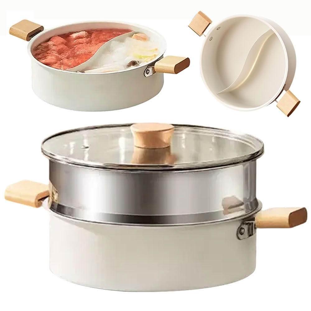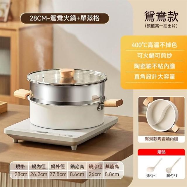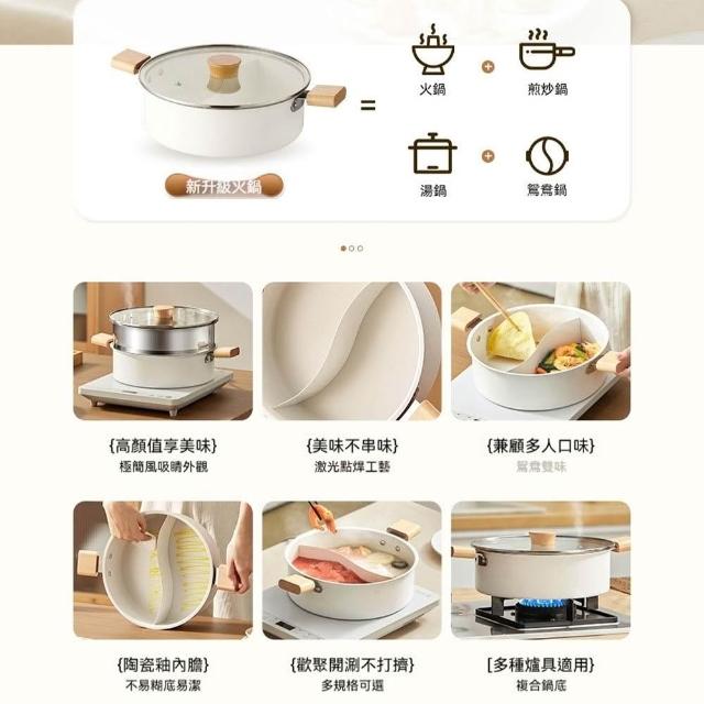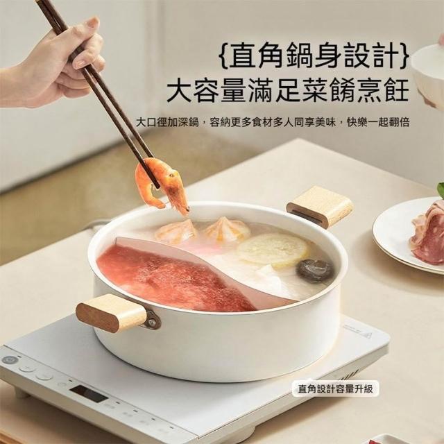 鴛鴦不粘鍋 鴛鴦鍋 火鍋鍋 火鍋盆 28/30cm 贈湯勺漏勺(陶瓷不沾鍋、打邊爐鍋、湯鍋、煎炒鍋、炒菜鍋、鴛鴦火鍋)