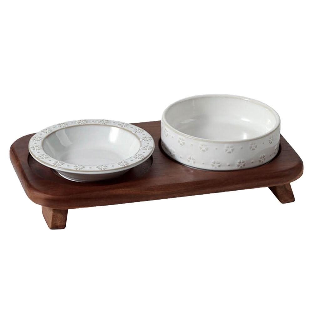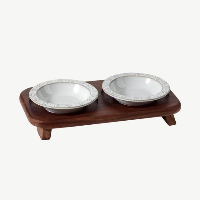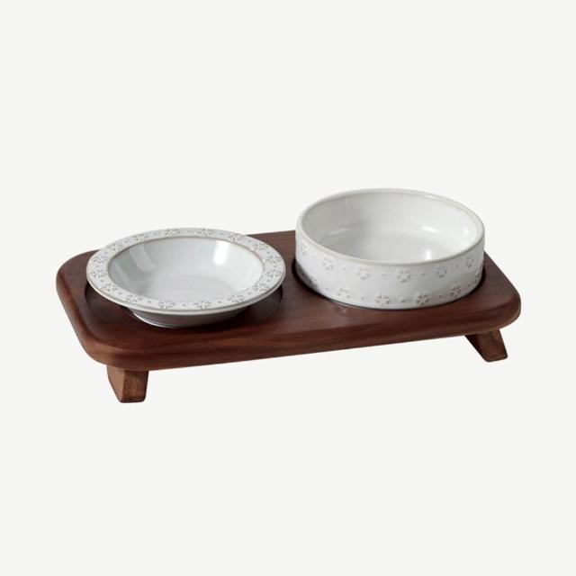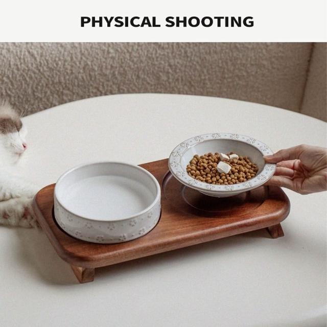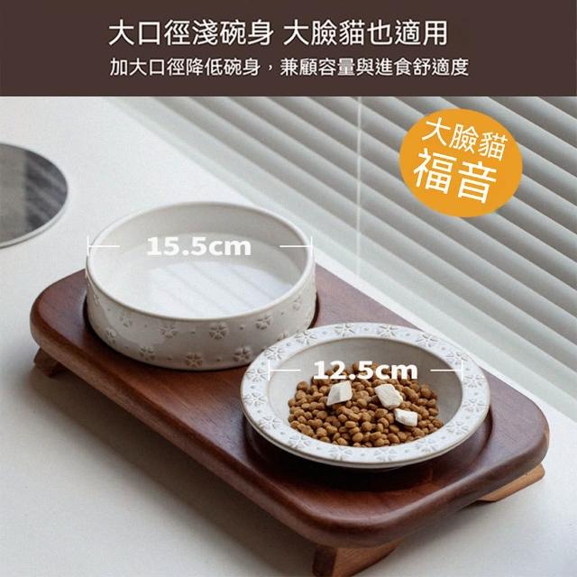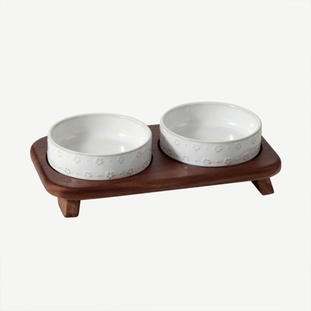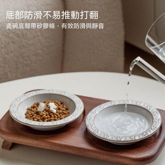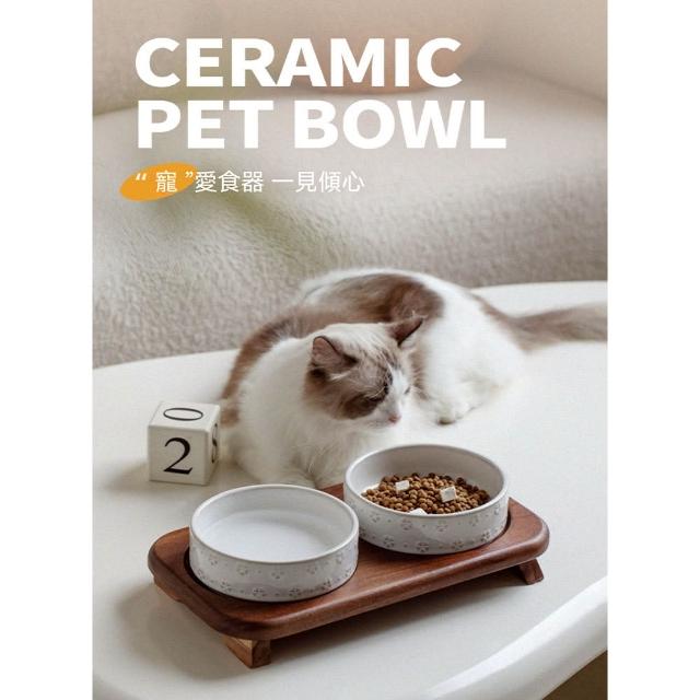 陶瓷寵物碗 雙碗寵物碗 陶瓷碗 飯碗/水碗 雙碗款 加大口徑(貓咪碗、狗碗、狗糧碗、貓咪飲水碗、實木底座、防打翻)