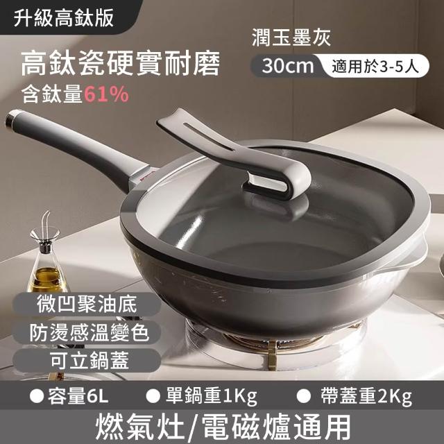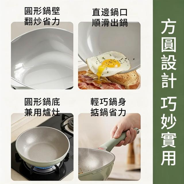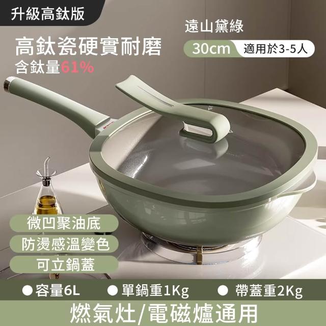 鈦陶瓷炒鍋 方圓炒鍋 不粘鍋 炒菜鍋 30cm 大容量(不粘炒鍋、煎鍋、陶瓷鍋、平底鍋、輕量鍋、高鈦0氟、不挑爐灶)