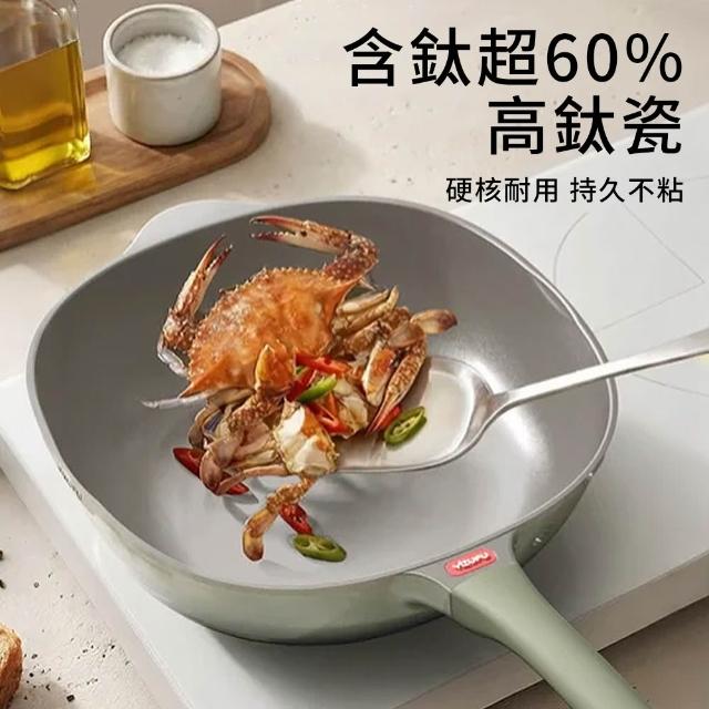 - 鈦硬耐磨,加深多用,兼容爐灶