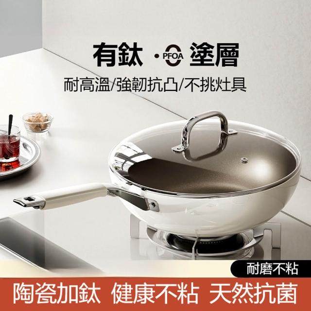 有鈦陶瓷不沾鍋 炒鍋 不粘鍋 平底鍋 炒菜鍋 無氟塗層(陶瓷鍋/煎鍋/煎炒鍋/輕量鍋/料理鍋)