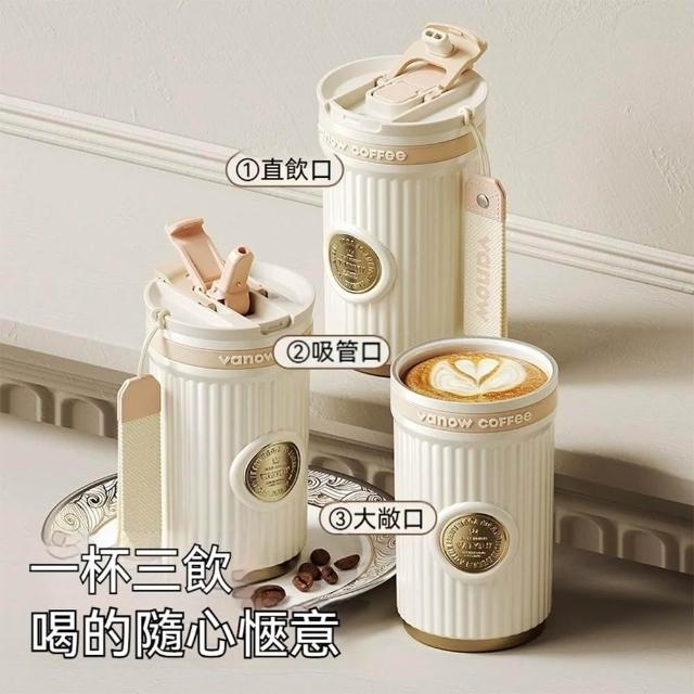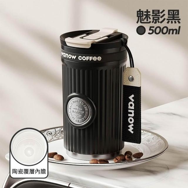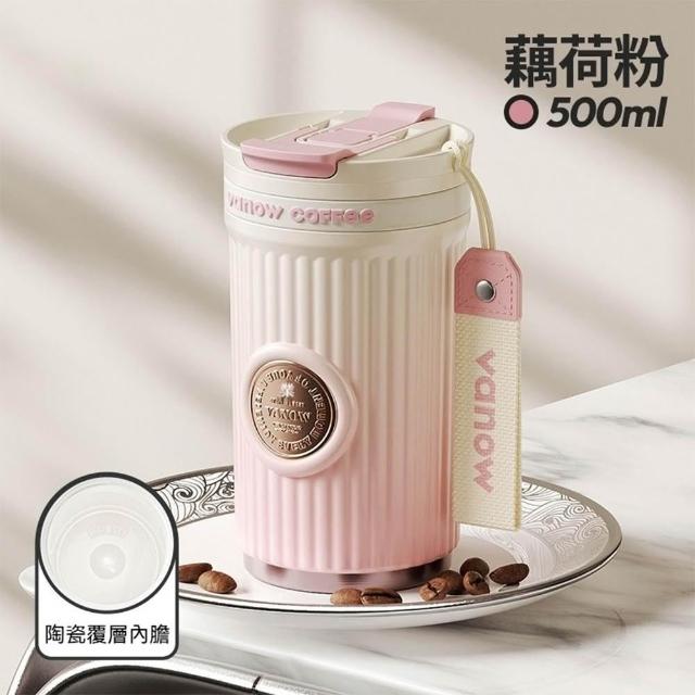 咖啡保溫杯 陶瓷保溫杯 保冰杯 吸管杯 500ml 陶瓷內膽 帶提繩帶禮盒(隨行杯、咖啡杯、車載杯、一杯三飲、保溫保冷)