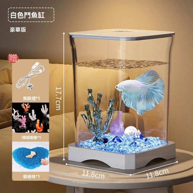 桌面小型魚缸 小型造景生態養魚水族箱帶燈 加厚桌面美觀小魚缸