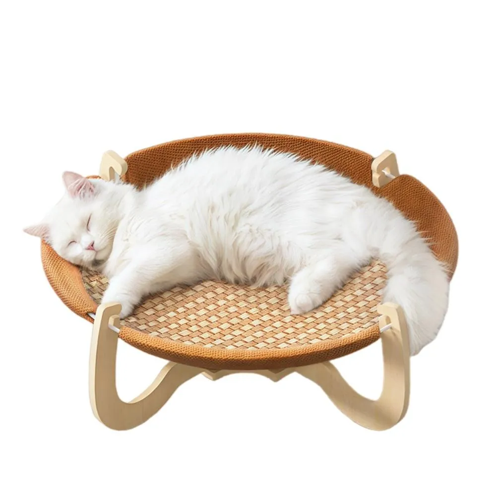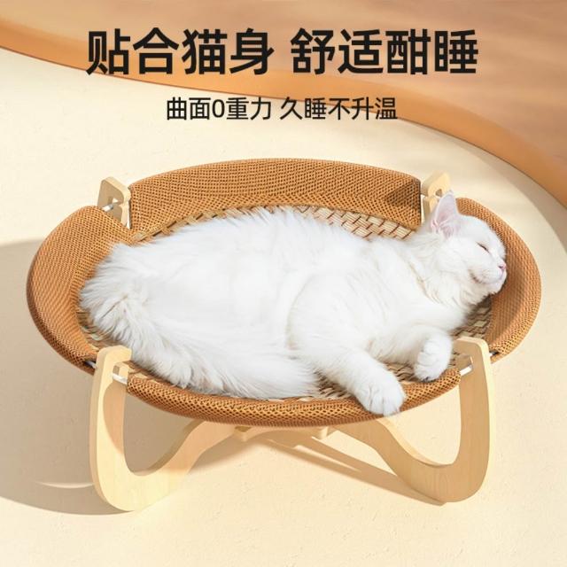 藤編貓窩 夏季吊床四季通用 貓咪睡覺窩涼席夏天小貓床寵物行軍床