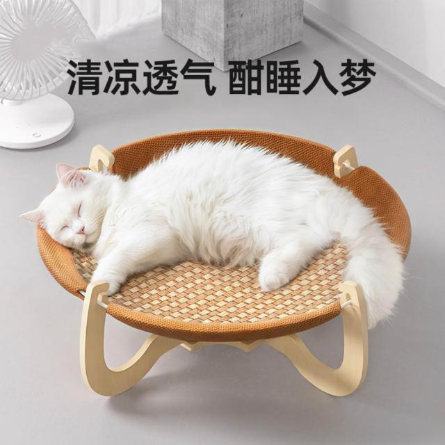 藤編貓窩 夏季吊床四季通用 貓咪睡覺窩涼席夏天小貓床寵物行軍床