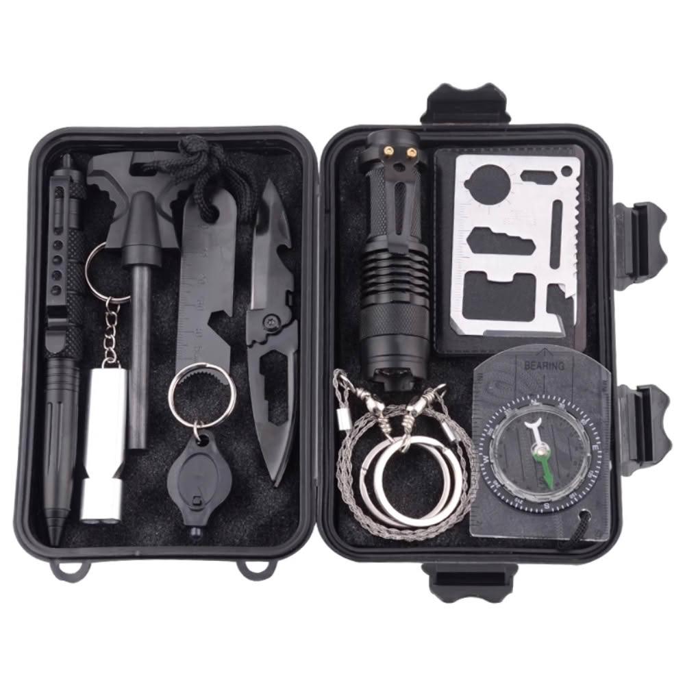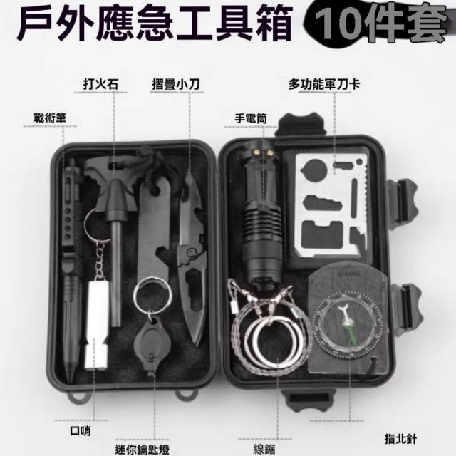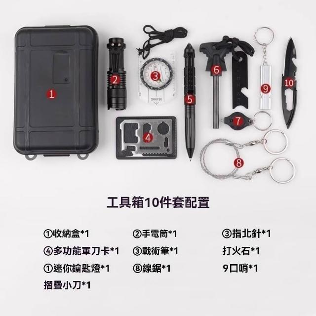戶外應急套裝 多功能組合工具箱 10件套組合(手電筒/指北針/多功能刀卡/戰術筆)