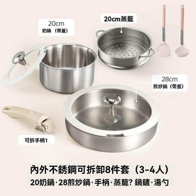 宜品居家316不銹鋼可拆卸手柄鍋具套裝 竈爐通用 無塗層(煎炒鍋/平底鍋/不粘鍋/湯鍋/疊疊鍋)