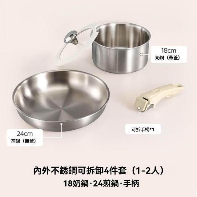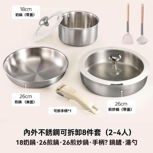 宜品居家316不銹鋼可拆卸手柄鍋具套裝 竈爐通用 無塗層(煎炒鍋/平底鍋/不粘鍋/湯鍋/疊疊鍋)