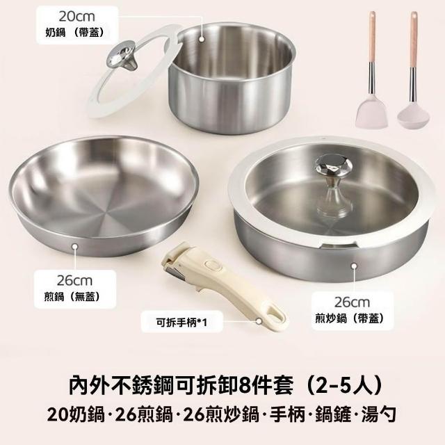 宜品居家316不銹鋼可拆卸手柄鍋具套裝 竈爐通用 無塗層(煎炒鍋/平底鍋/不粘鍋/湯鍋/疊疊鍋)