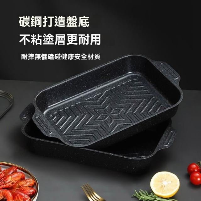 宜品居家家用長方形烤盤 不粘烤魚盤 加大容量附玻璃鍋蓋(商用烤肉盤/戶外燒烤盤/烤魚爐)