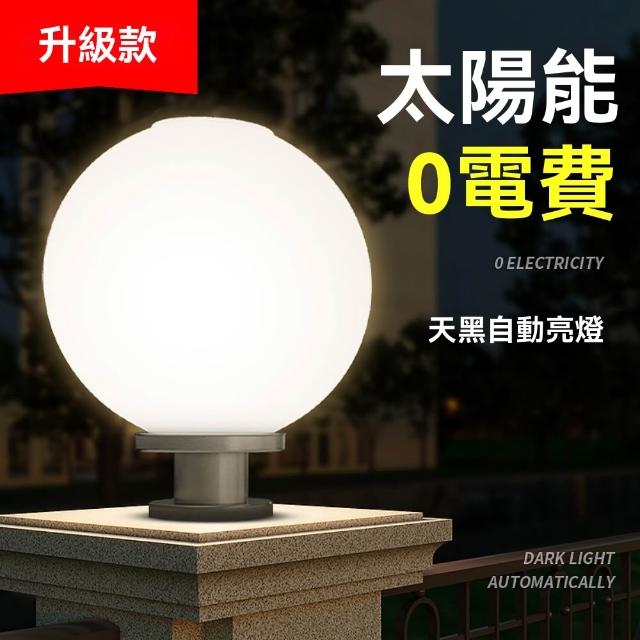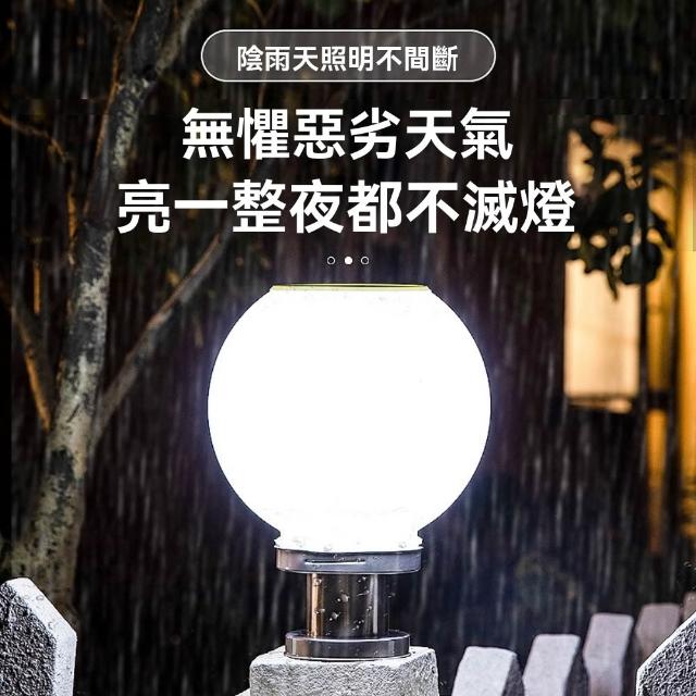 宜品居家圓形太陽能柱頭燈 圓球燈 戶外家用庭院門口柱子圍墻照明(30cm/白光/暖光雙色溫可選)