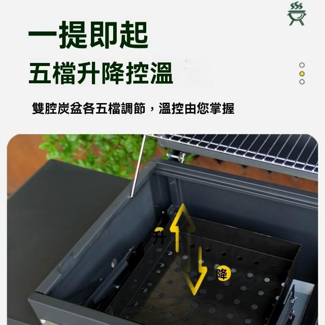 - 雙腔炭盆各五檔調節 溫控隨心調